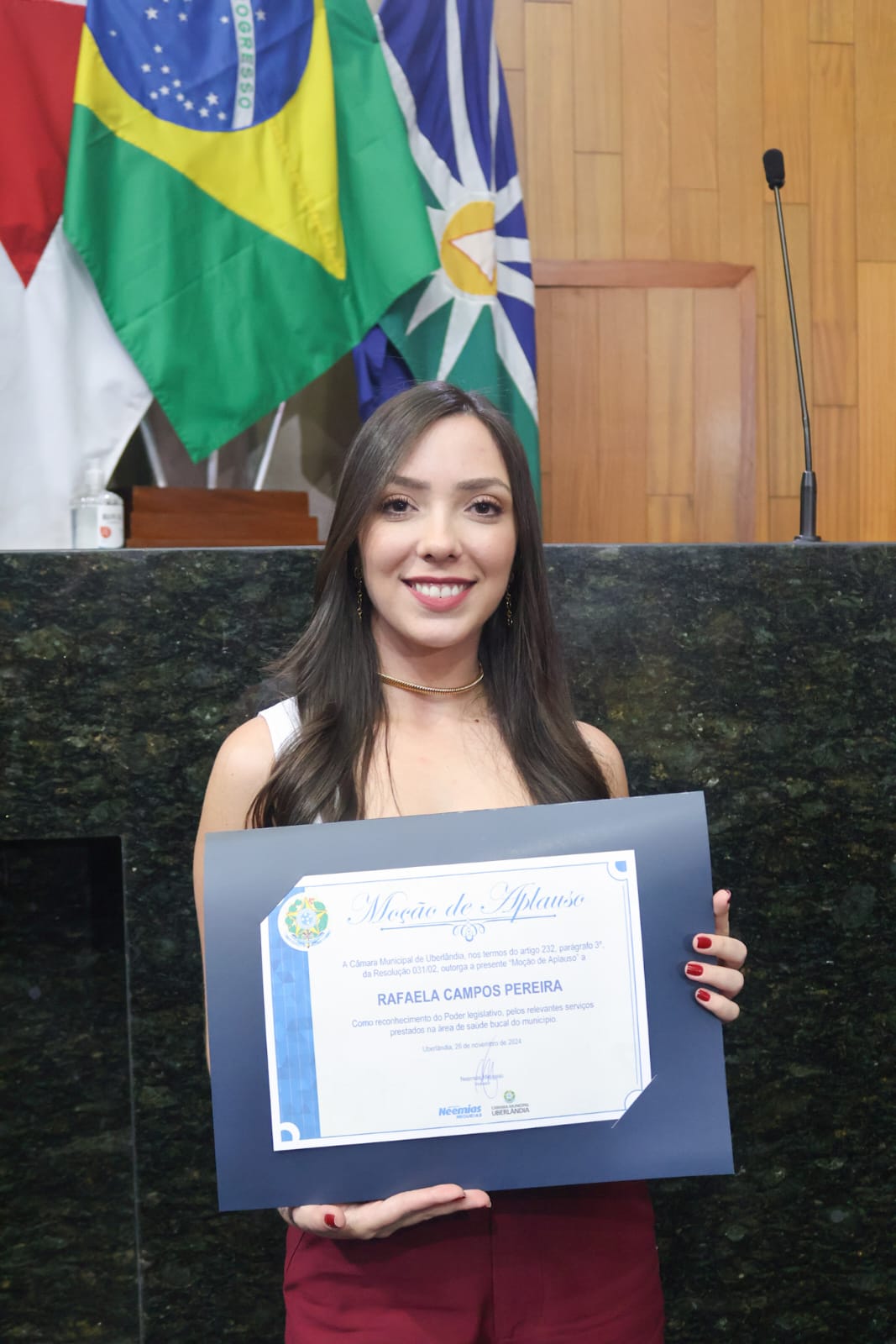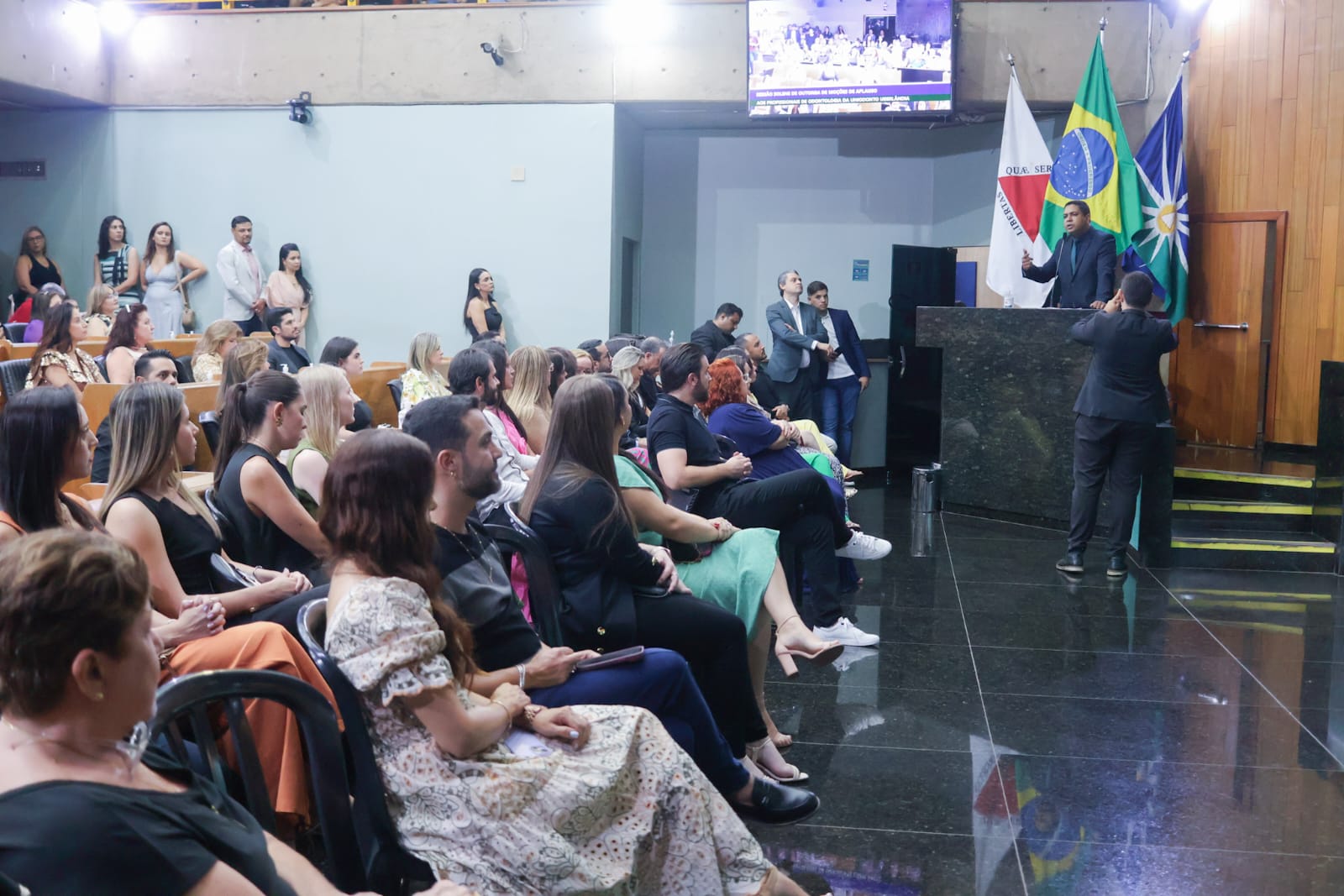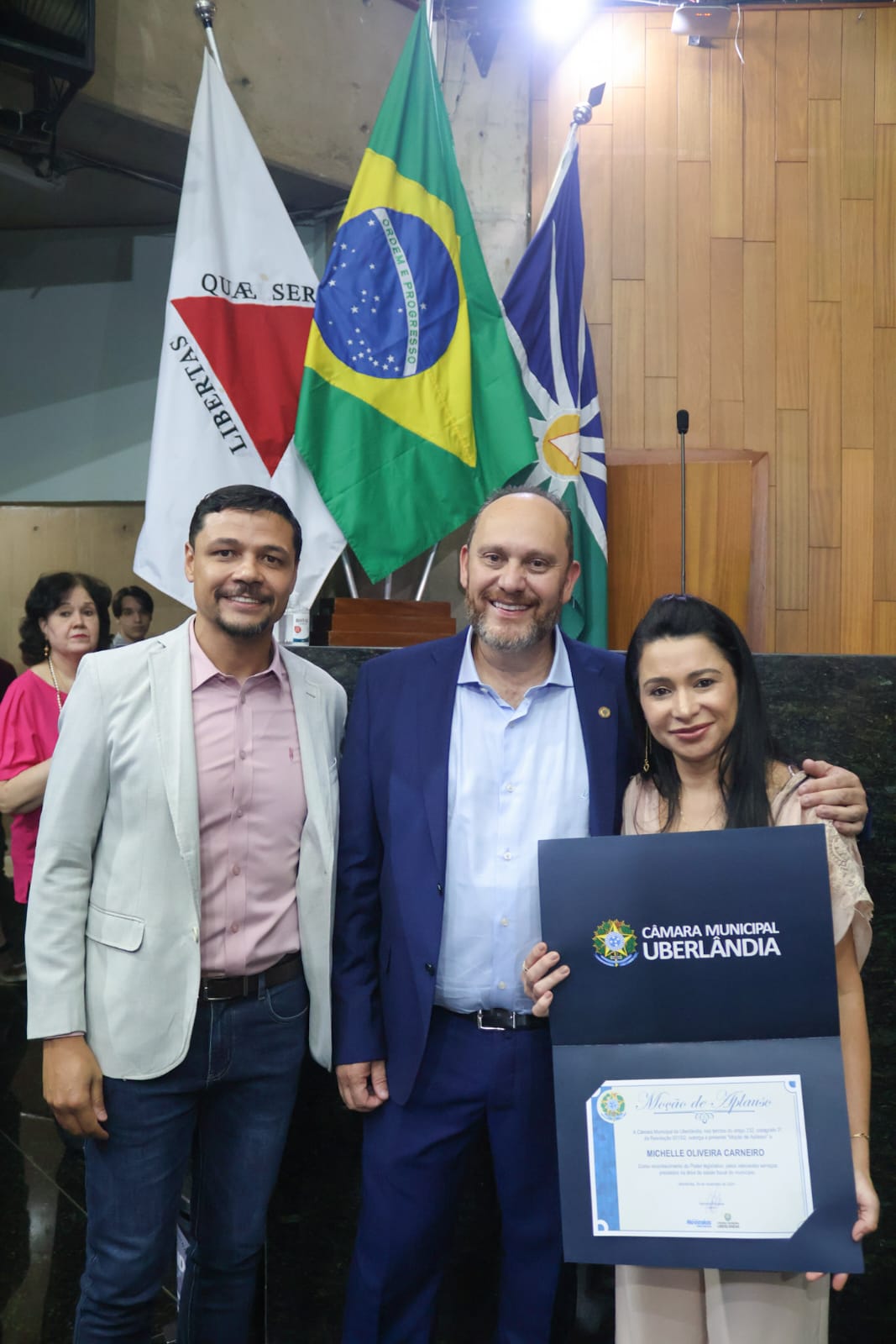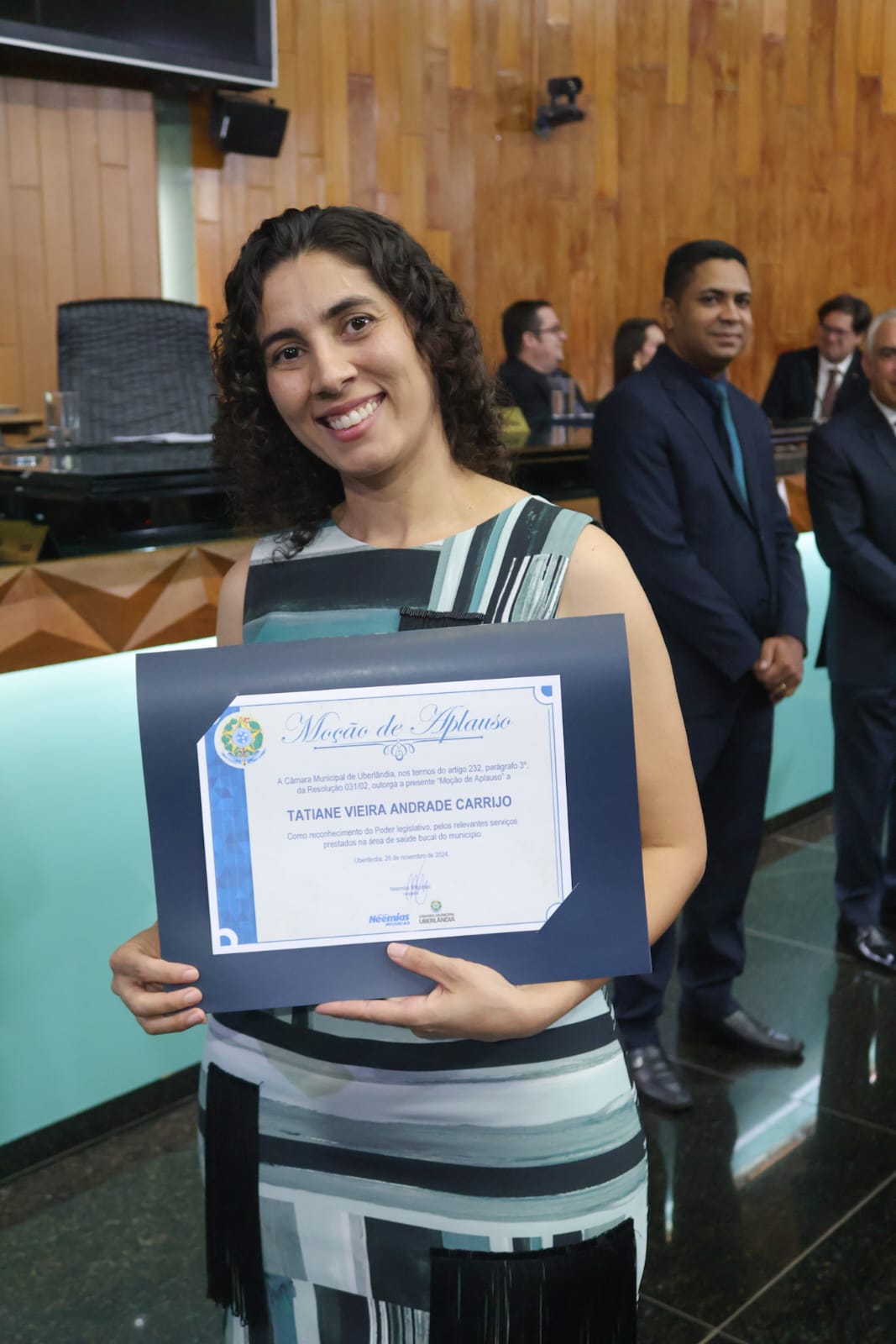 A Câmara Municipal de Uberlândia homenageou os profissionais da área da Odontologia, da Uniodonto Minas, com a “Moção de Aplausos” pelos relevantes serviços prestados na área da saúde bucal do município. A homenagem foi realizada, no dia 26 de novembro, através do vereador Neemias aos dentistas de destaque da Uniodonto Minas de Uberlândia. Uma noite especial que contou com a presença de autoridades e grandes profissionais da área.